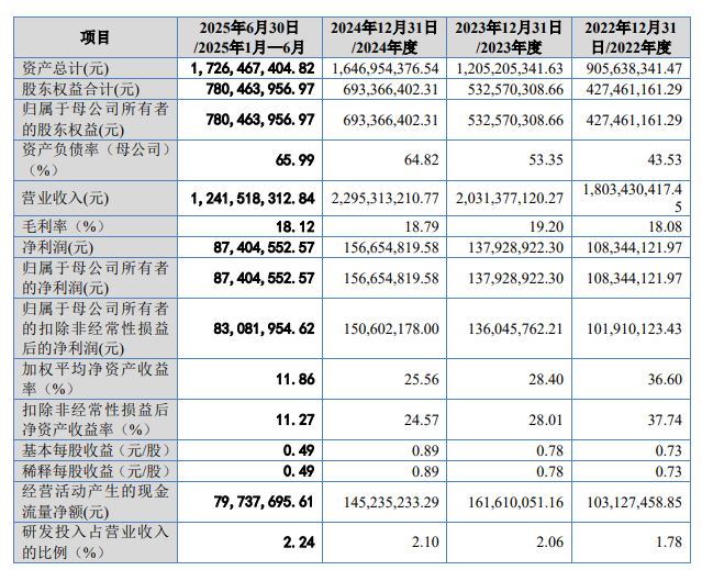 中国经济网北京10月28日电今日,青岛大开盈特种轮胎股份有限公司(股票简称:“高盈”,股票代码:“920020”)在北京证券交易所挂牌上市。股价开盘19.05元,收盘21.64元,涨幅188.53%。销售额7.75亿元,广度65.07%,换手率92.60%,市值47.88亿元。公司是一家专注于全球矿用和工程轮胎市场的创新驱动型公司,专业从事矿用和工程轮胎的设计、研发、销售和服务。公司产品类别包括工程子午线轮胎和全钢载重轮胎。本次发行前,泰凯英控股直接持有公司股份129,106,698股,占公司股份72.94%发行前总股本为公司第一大股东。本次发行后,泰开控股股份数量仍保持不变,占发行后公司总股本的58.35%,为公司第一大股东。王传珠通过泰开英控股间接控制公司72.94%的股份。王传柱先生的配偶郭永芳先生直接持有公司股份11,986,091股,占公司发行前总股本的6.77%。王传珠、郭永芳合计持有公司发行前总股本的79.71%,为公司实际控制人。本次发行后,公司实际控制人持股数量未发生变化。王传柱先生通过泰开盈控股间接控制公司58.35%的股份,郭永芳先生直接持有公司5.42%的股份。后本次发行,王传珠、郭永芳将共同持有公司总股本的63.77%,成为公司的实际控制人。 2025年7月25日,戴凯英首发出场。报价委员会会议提出的主要问题是: 1. 可靠性和可持续性方面的业绩增长。要求发行人结合2025年上半年经营业绩、订单现状、行业趋势、主要客户和销售研发团队的稳定性和变化、外交政策等情况,说明期后业务增长的可持续性以及是否存在业绩下滑的风险。 2、关于技术创新。说明贵公司与同行相比在技术进步和研发核心竞争力方面的具体记录。大开盈本次发行4425万股,全部为新股。不存在旧股转让情况。发行价格为7.50元/股。太开印g的保荐人为招商证券,保荐代表人为葛奇、王立祥。泰开盈本次募集资金总额为33,187.5万元。扣除发行费用41,435,495.31元(不含增值税)后,净收购金额为290,439,504.69元。泰凯英最终募集资金净额较原计划减少582.22亿元。泰凯英公布的宣传册显示,泰凯英拟募资39,010.32元。这1万元将用于各类轮胎产品改进项目、特种轮胎创新技术研发中心建设项目、特种轮胎智能管理系统改进项目。大开盈本次公开发行新股发行成本(不含税)为4,143.55万元,其中保荐费660.38万元。认购费2452.83万元。审计及验资费用达5,307,500元。律师费:424.53万元。发行手续及其他费用75.06万元。 2022年1月至6月、2023年、2024年、2025年,泰开英分别实现营业利润18.03亿元、20.31亿元、22.95亿元、12.42亿元。归属于母公司所有者的净利润分别为1.08亿元、1.38亿元、1.57亿元、874.046亿元。扣除非经常性损益后归属于母公司所有者的净利润分别为1.02亿元、1.36亿元、1.51亿元和8308.2万元。截至2022年1月、2023年、2024年、2025年6月,泰开英销售商品、提供劳务收到的现金分别为16.28亿元、17.8亿元、18.95亿元、10.55亿元。经营活动产生的现金流量净额分别为1.03亿元、1.62亿元、1.45亿元、7,973.77万元, 分别。大开盈预计2025年1月至9月营业利润为19亿元至19.65亿元,同比增长12.08%至15.92%。归属于母公司所有者的净利润为1.28亿元至13.1亿元,同比增长8.76%至11.31%。扣除非经常性损益后归属于母公司所有者的净利润为1.23亿元至1.26亿元,较上年同期增长8.74%至11.40%。